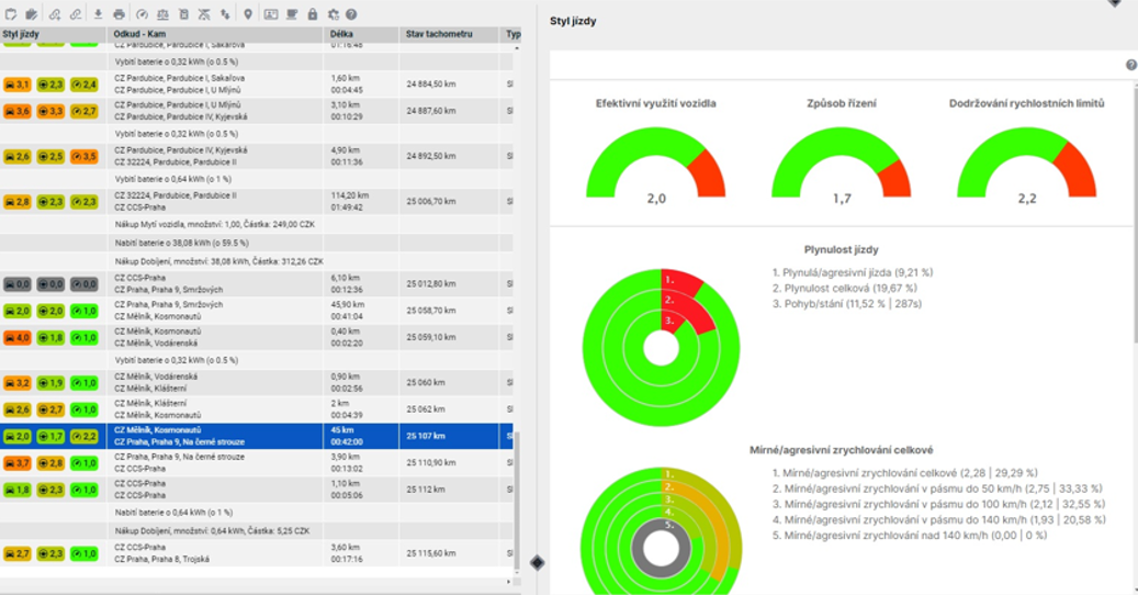 - Optimalizace tras a jízdního stylu: Na základě získaných dat lze efektivněji plánovat a slučovat pracovní cesty nebo omezit zbytečné jízdy. Systém navíc pomáhá identifikovat neefektivní styl jízdy (např. zbytečný chod naprázdno či prudké brzdění), díky čemuž jde řidiče motivovat ke zlepšení a dalšímu snížení spotřeby.
